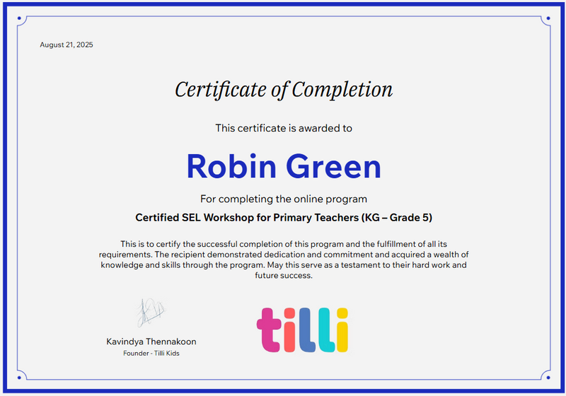 Certified SEL Workshop for Primary Teachers (KG – Grade 5)